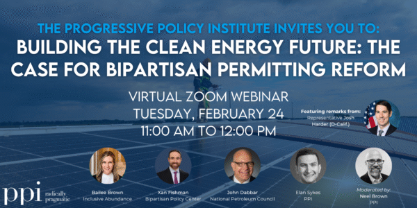 Join PPI on Monday, February 24th at 11:00 a.m. EST for “Building the Clean Energy Future: Why Democrats Should Embrace Permitting Reform,” an hour-long virtual webinar exploring how bipartisan permitting reform can accelerate clean energy deployment, lower costs for families, and strengthen American infrastructure.