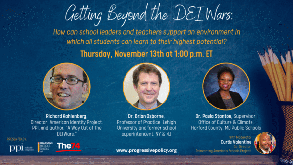 The webinar is part of a series co-sponsored by the Progressive Policy Institute and The 74 Million education magazine.